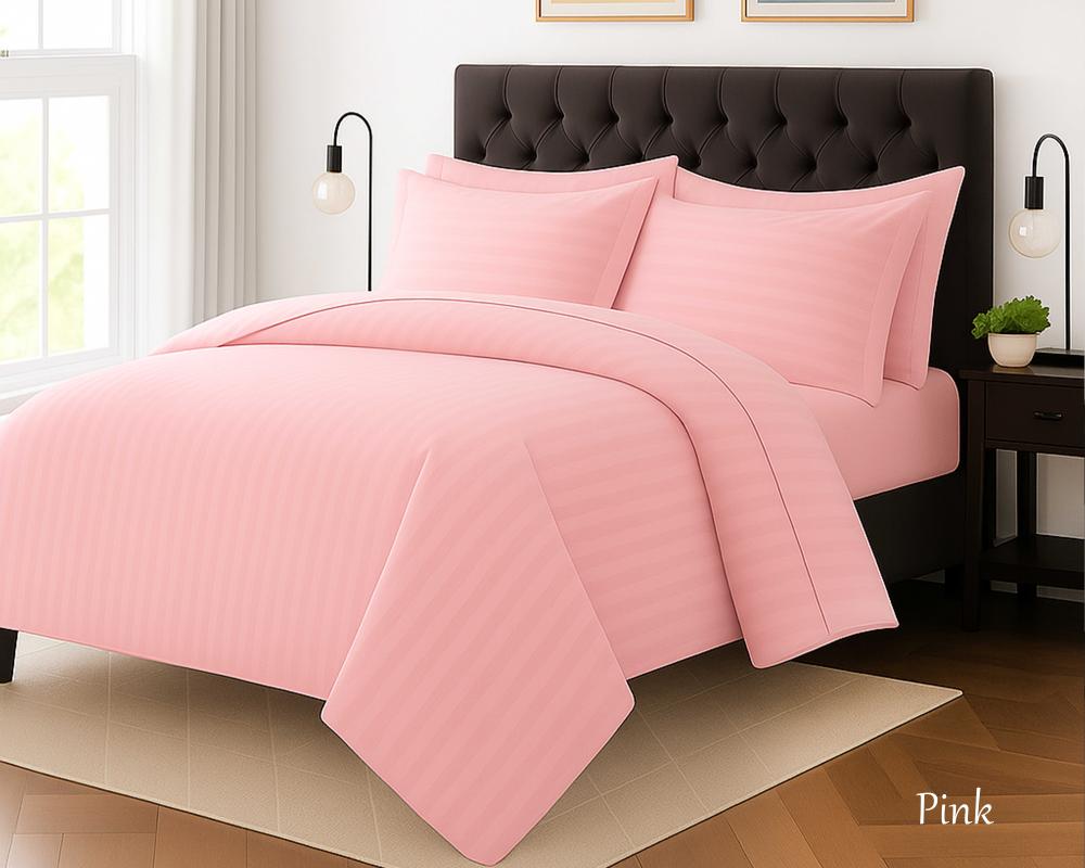 ارتقِ بتجربة نومك مع طقم لحاف فندقي فاخر – مقلم ناعم | نفرين – 6 قطع | لون حكلي